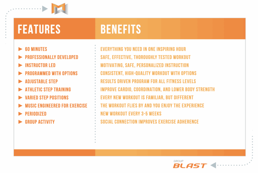 height enable you to determine the intensity that is just right for you. The workout is inspired by functional integrated exercises, circuit training, and sports drills to make you feel like an athlete in training. And the best part is you will HAVE A BLAST because all of the exercises are set to motivating, energetic music. Every Group Blast workout has 10 tracks, and each track has a specific training objective. Here is a breakdown of what you will experience